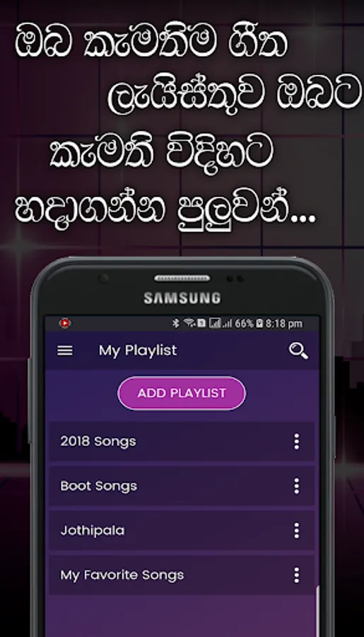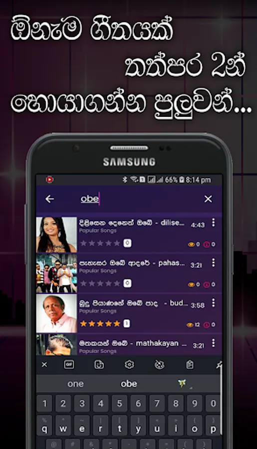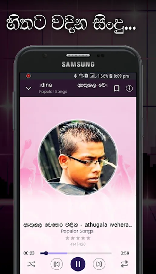 This app has thousands of Sinhala mp3 Songs from all the artists in Sri Lanka. You can find any song by Artist name or Song name very easily. Then you can play and Download that songs.