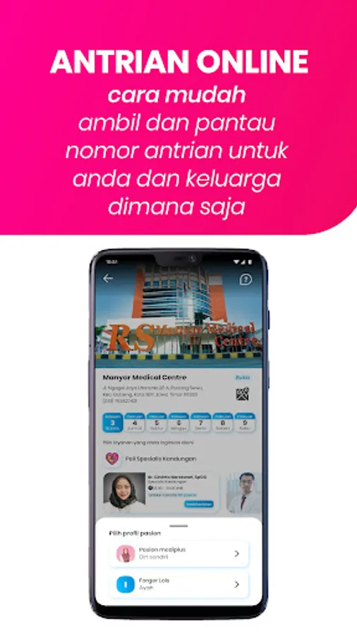 Features that make it easier for you to visit doctors' and clinics that are integrated with the application. Anywhere at any time you can register the queue and monitor in the gadget with just one "click".