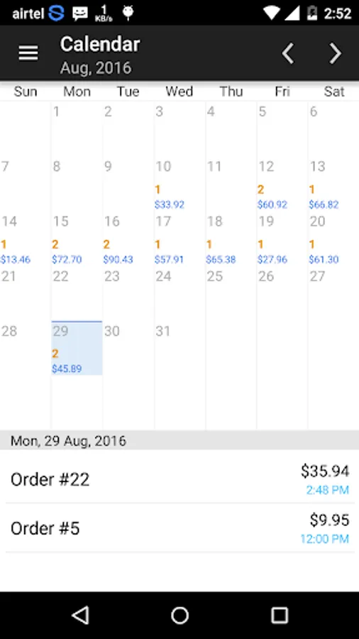 * Click date to view orders of that date easily.