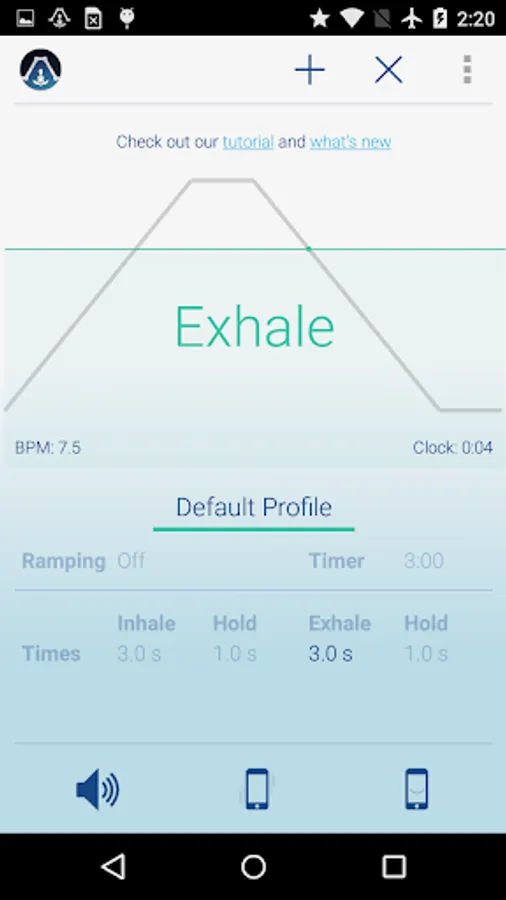 Paced Breathing helps you improve your breathing by giving you visual, audio, and haptic (vibrate) breathing cues.