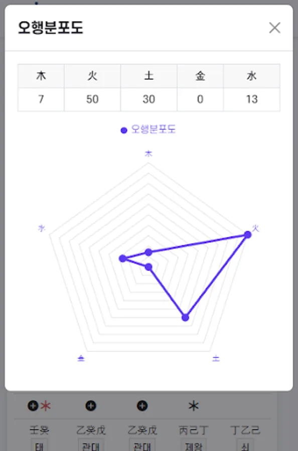 Cheonganhap: Mark a circle in the color of the opposing five elements to be combined (insert the corresponding display image)