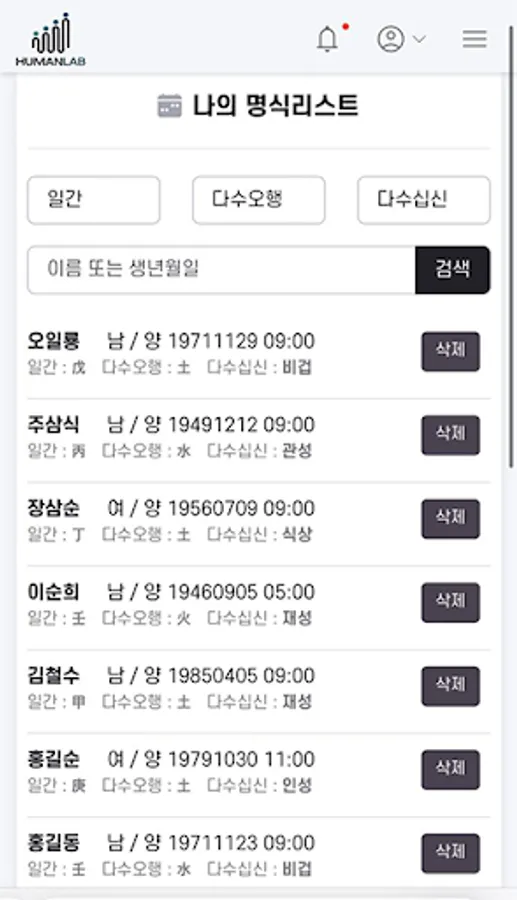 Search by name (ㄱㄴㄴ), automatic save and search by daily, multi-five elements