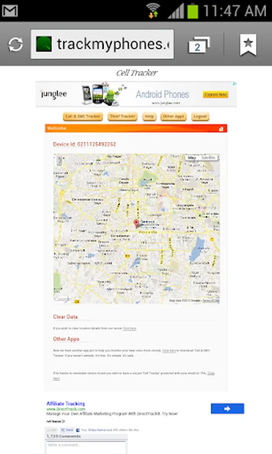 - You can even see the location from cloud. To view the location of your mobile go to our website and enter your device id which acts as password. You have to then request for location and it will get the location information from the app. Please note that the internet has to be available on the device for this to work.