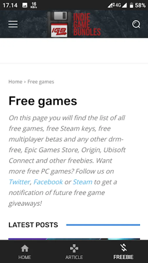 Aplikasi yang menampilkan diskon dimulai dari diskon 0% sampai 100% serta dapat menampilkan artikel yang memuat permainan gratis