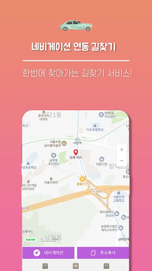 - 실시간 네비게이션 이용 가능, map 상 위치 확인 가능