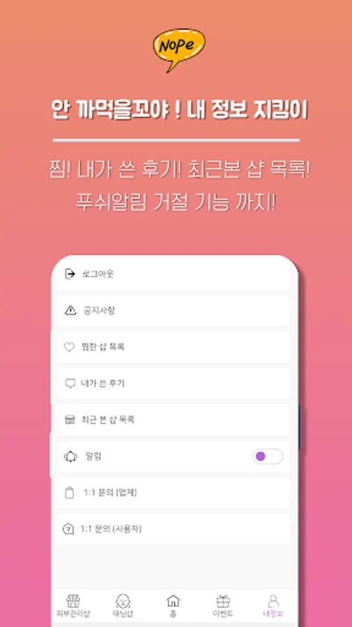 - 푸쉬알림 공지 체크 여부(본인선택 가능)