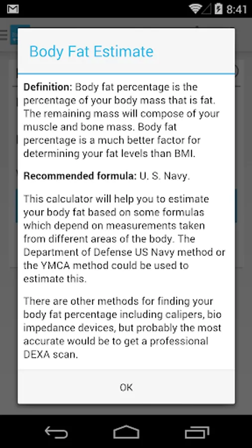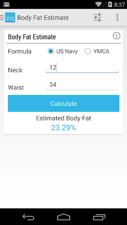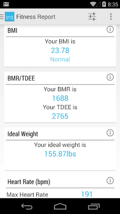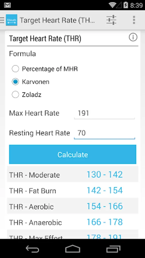 Multiple formulas for many calculators BMR, TDEE, Body fat, max and target heart rate and more.