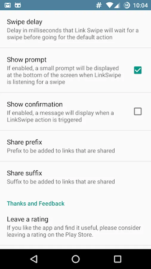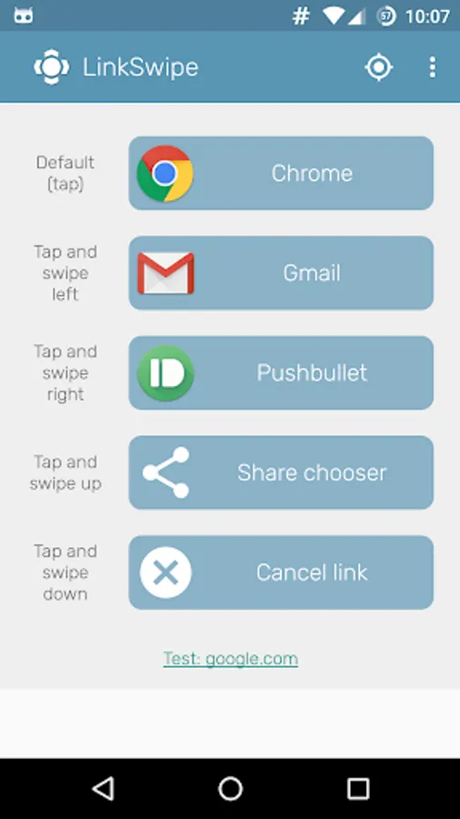 For each each gesture you can configure LinkSwipe to do one of these actions:
