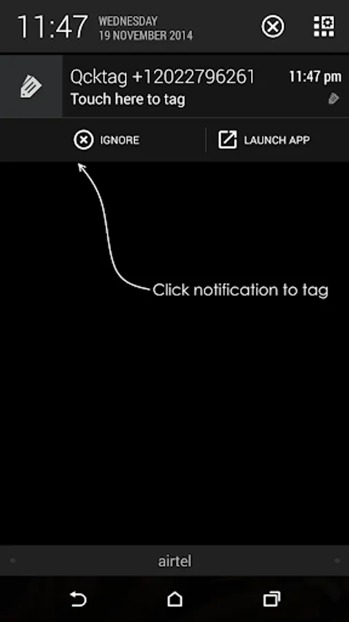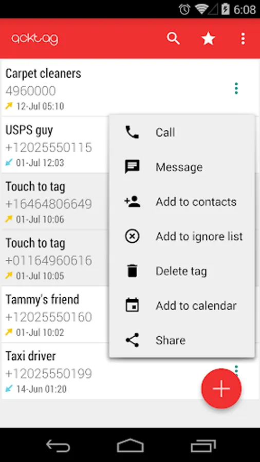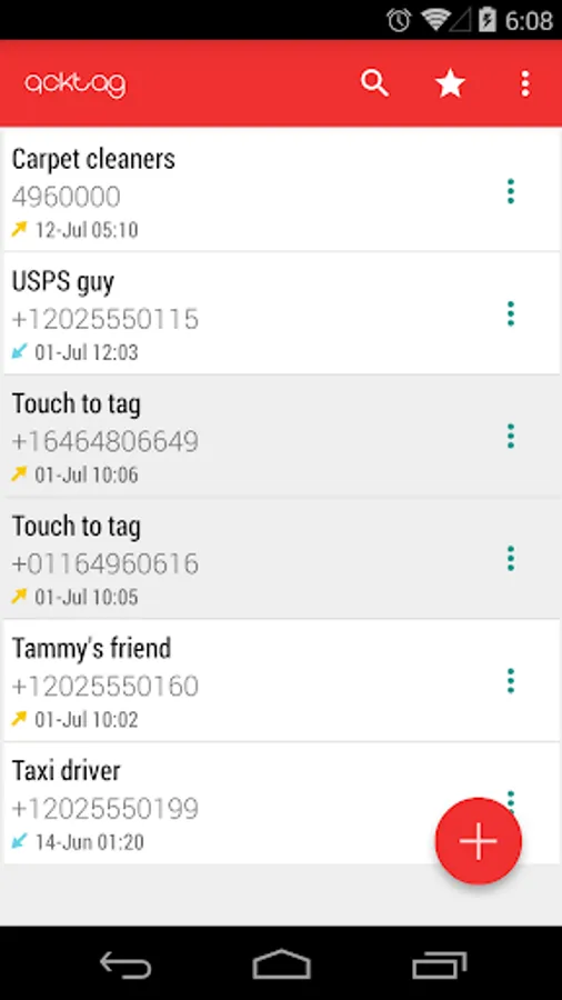 Every time you complete a call from/to an unknown number, Qcktag will ask you for a quick tag you can attach to the phone number. Tagged numbers are not sent to the contact list, but are accessible through the main Qcktag application.