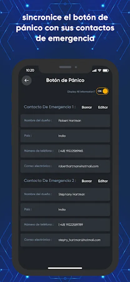 - Configuration of Emergency contacts, Panic Button installed on your motorcycle.
