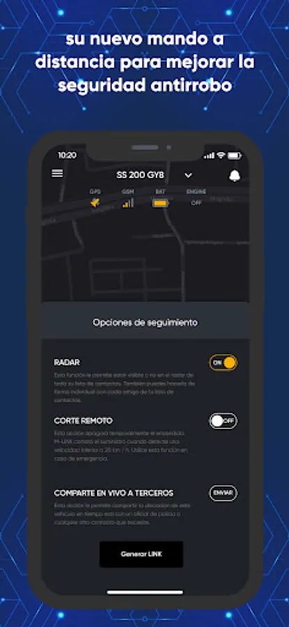 Among other features and benefits, this App incorporates anti-theft alarms and real-time location of your vehicle(s) to make them safer and have access to real-time notifications.