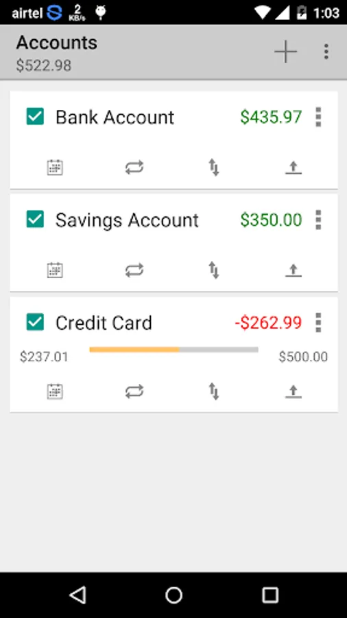 # Create unlimited accounts as Bank, Savings and Credit charges account.