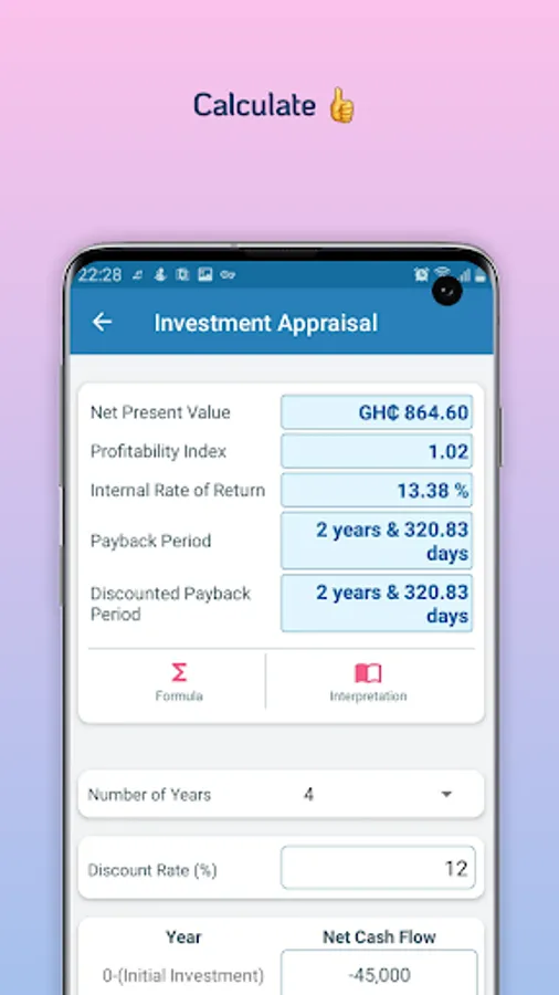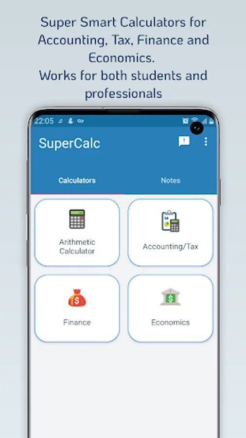 SuperCalc is a comprehensive calculator for basic and complex calculations in Accounting, Finance, and Economics. It has an attractive and easy-to-use interface bundled with a catalog of calculators together with their formulas. Included in the app are also short notes in Accounting, Economics, and Finance. These notes provide further explanations to the Calculators and their formulas and other topics as well. SuperCalc provides a helping hand for students especially and anyone at all for their personal needs. Whether it is calculating the payments on your loan of calculating the annuities on your investments or even the value of your money in some time to come, SuperCalc will do the job for you. For students also, SuperCalc is a smarter way to study, whether you want to perform some quick calculations with ease or you want to be sure of your answers or to quickly check up some formulas.