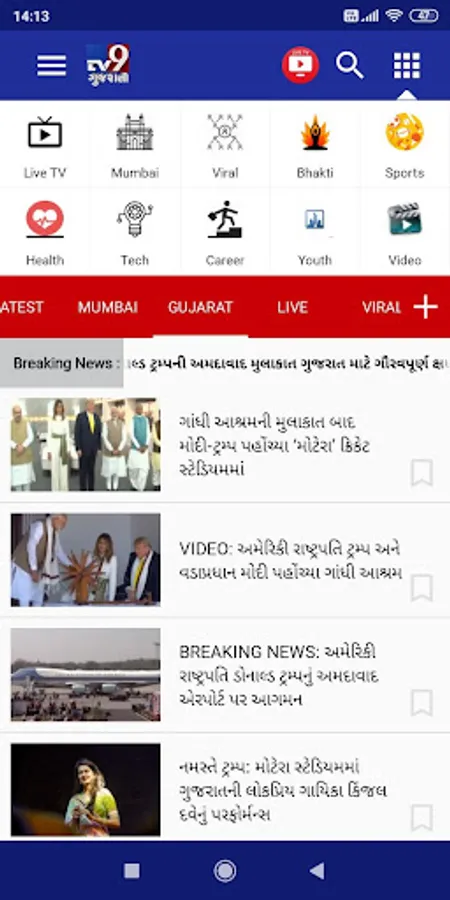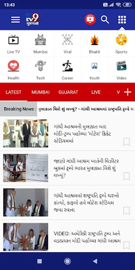 • Watch your favorite TV9 Gujarati News Live with embedded “Live TV”.