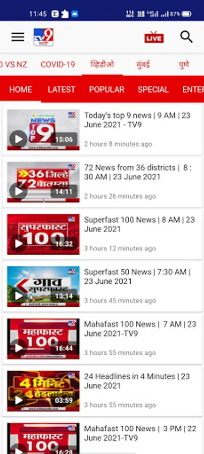 • Watch your favorite TV9 Marathi News Live with embedded “Live TV”.
