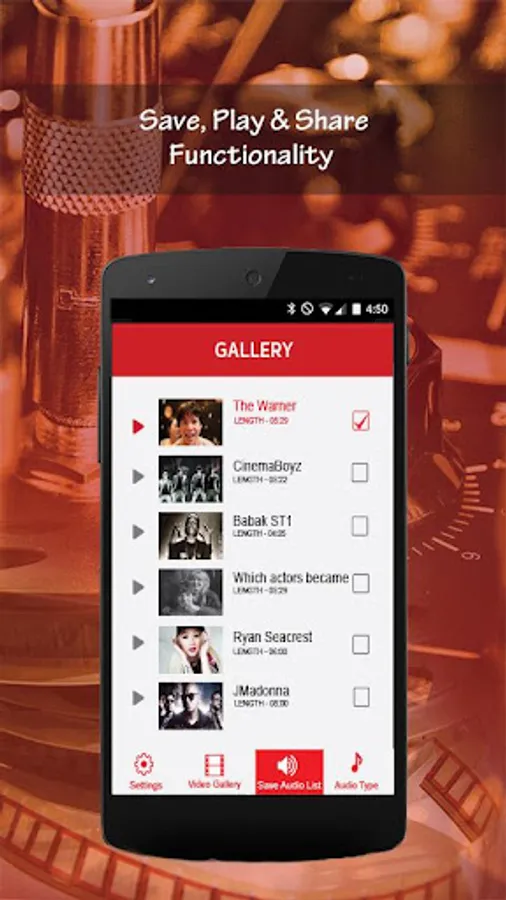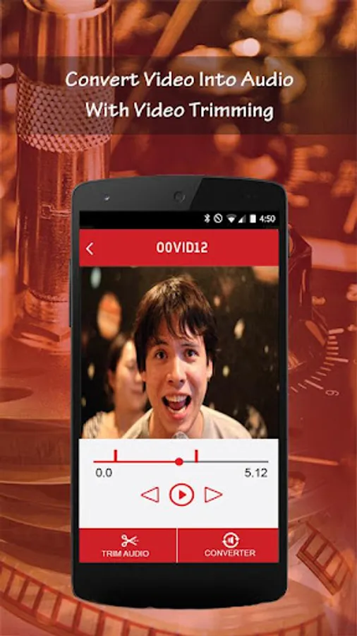 “VideoConverter” converts video files to audio files very easily and simply, and then allows you to save and share the new audio files with your contacts.