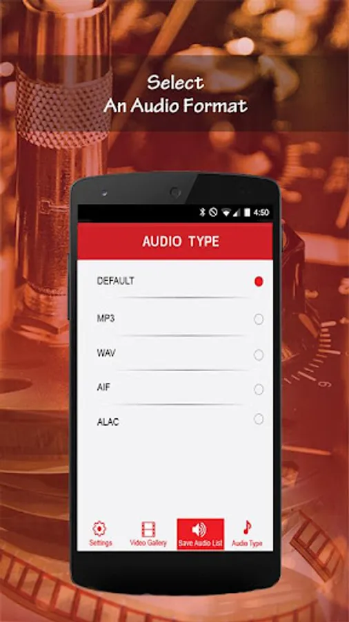 Tip: If you want to change the file format of your converted video files, simply tap the “Audio Type” tab and select from DEFAULT (M4A), MP3, WAV, AIF or ALAC