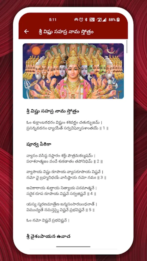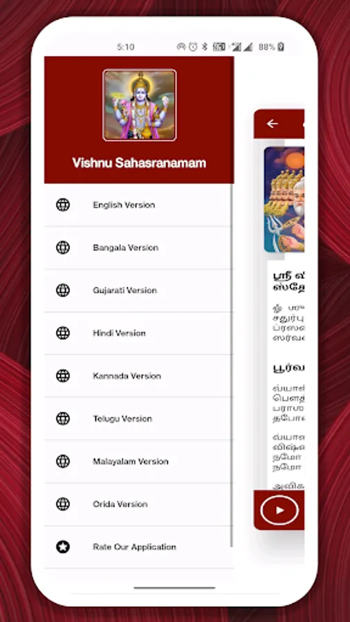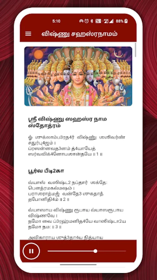 "Vishnu Sahasranamam" with Lyrics and multiple support languages.