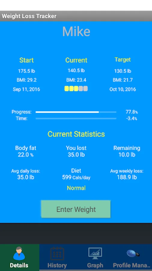 - Calculate total weight loss, daily weight loss, average monthly weight loss