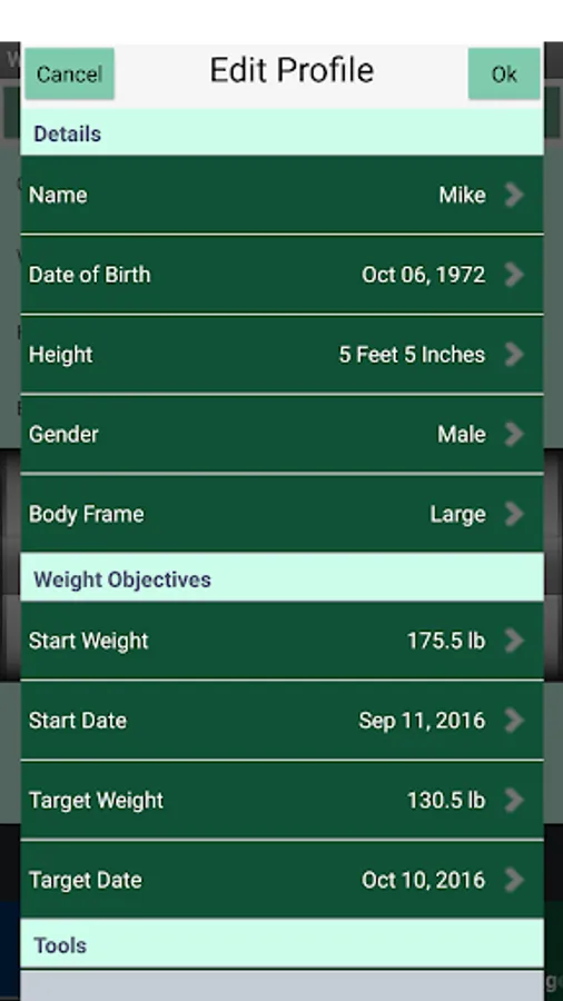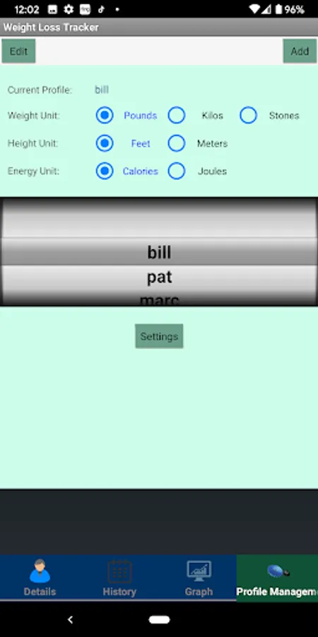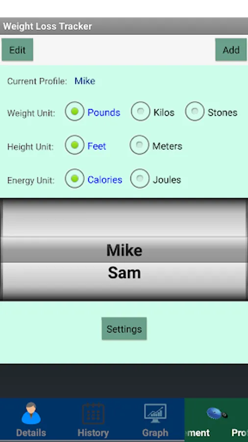 - Measurement tracking in kilos, pounds, feet’s, meters, stones