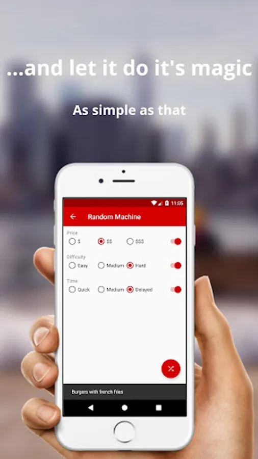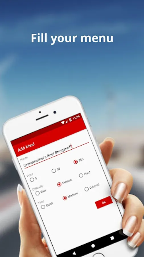 Fill the menu with meals categorized by price, difficulty, and cooking time; and then you'll be able to choose a random meal for today: as simple as that!