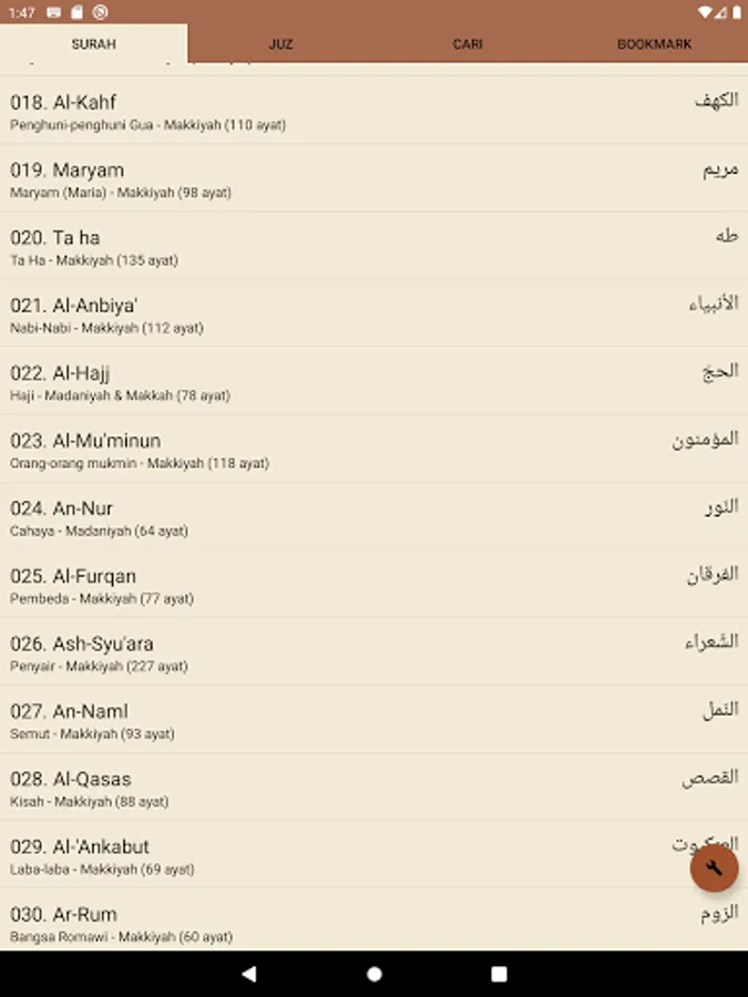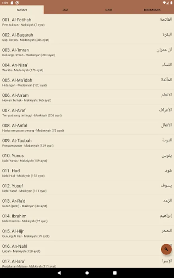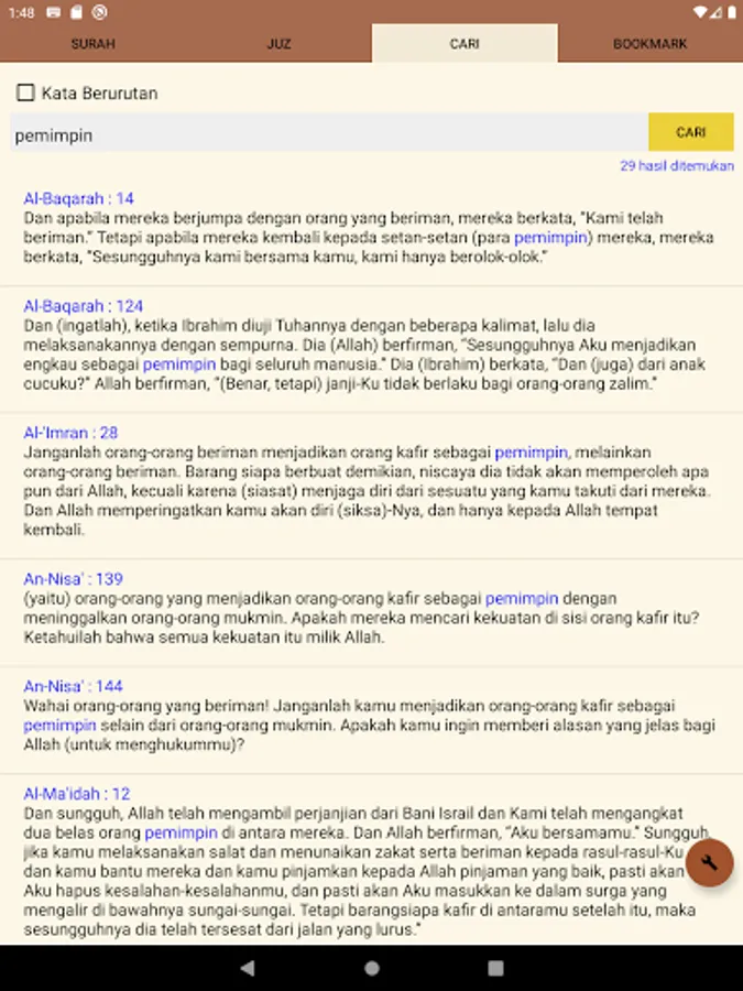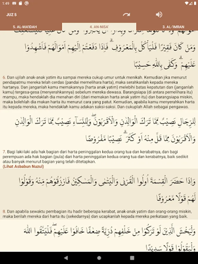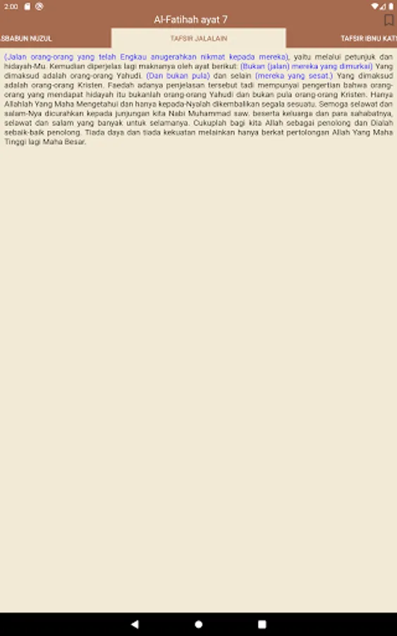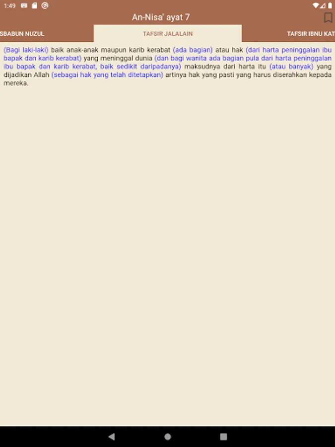 One of the interpretations in this application is the Jalalain Tafsir which is presented in full 30 juz in Indonesian
