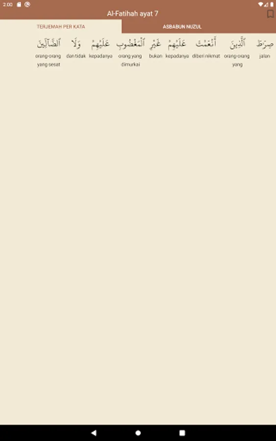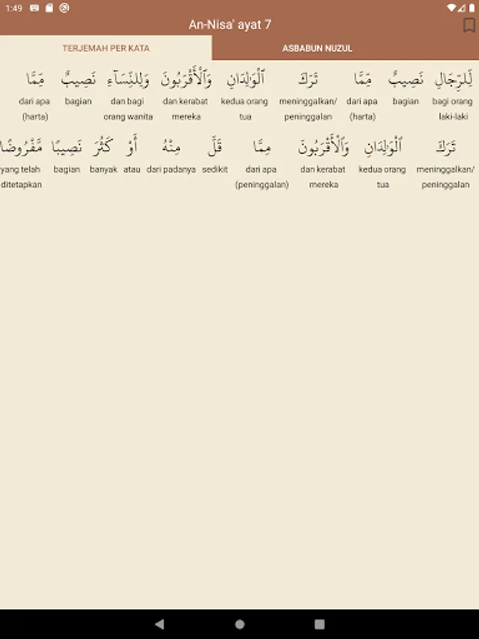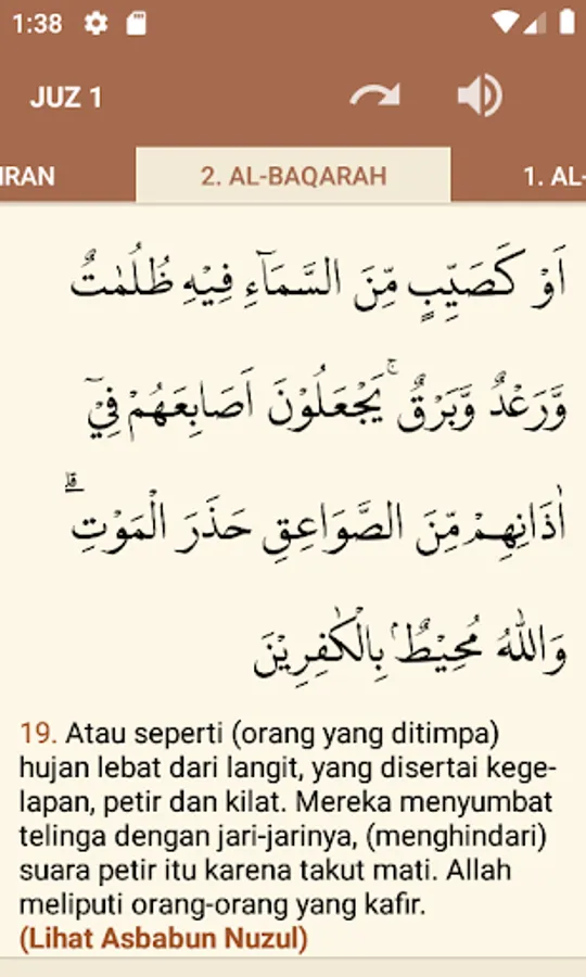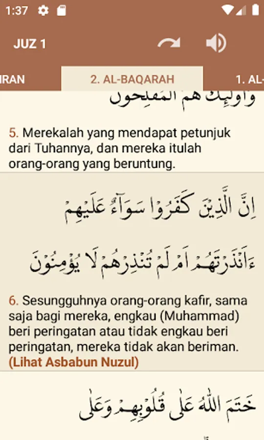 This nuzul asbabun comes from a book by Imam Jalaludin As-Suyuthi. Where of course not all verses have asbabun nuzulnya, only some verses of the Koran have a history of the causes of the decline which are displayed in Indonesian when the user clicks on a certain verse.