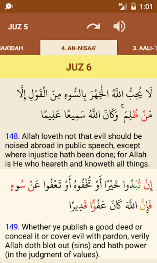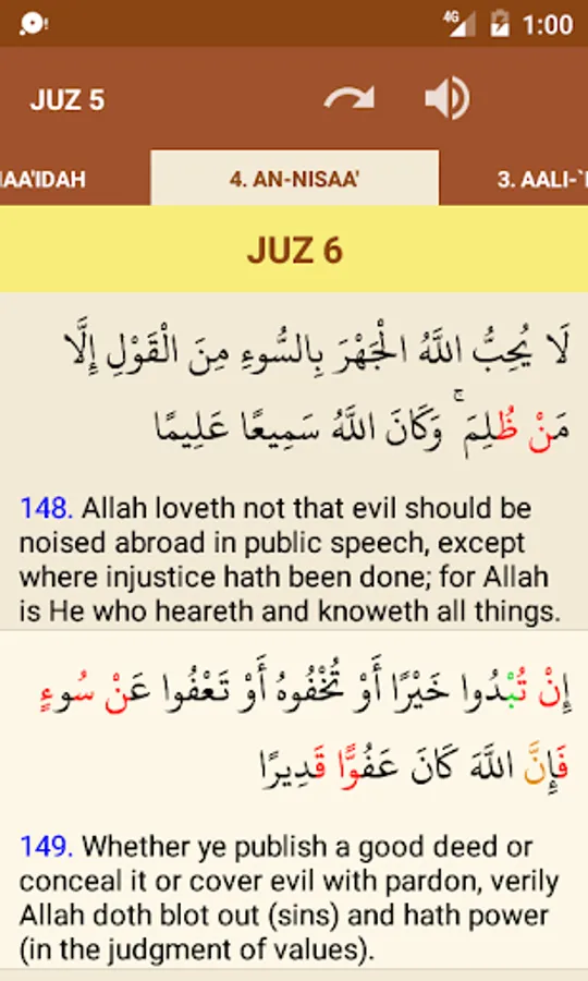This application is equipped with complete tajweed 30 juz color, where each letter is given different color according to rule of tajweed. With this Tajwid feature we hope to facilitate the reader in reading the Quran in accordance with the actual Tajweed rules.