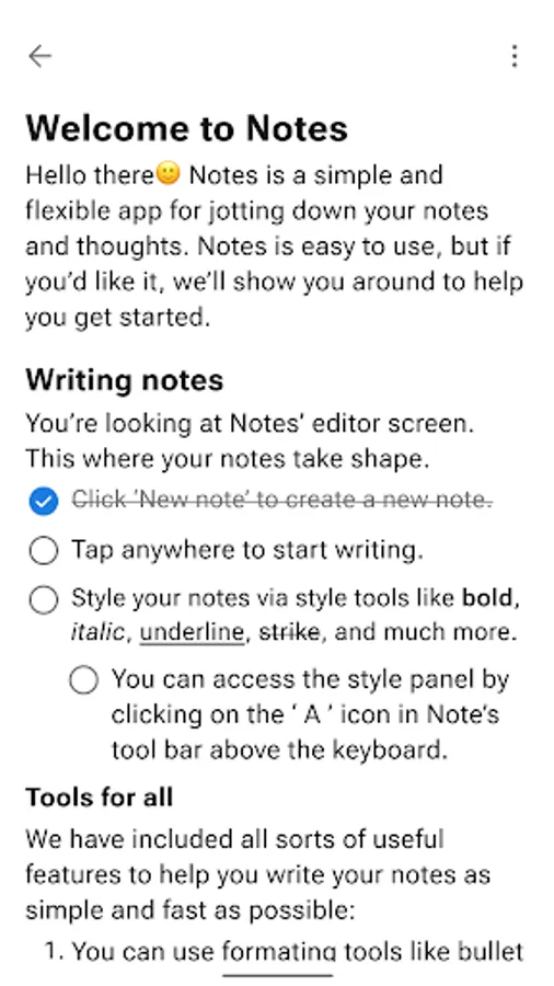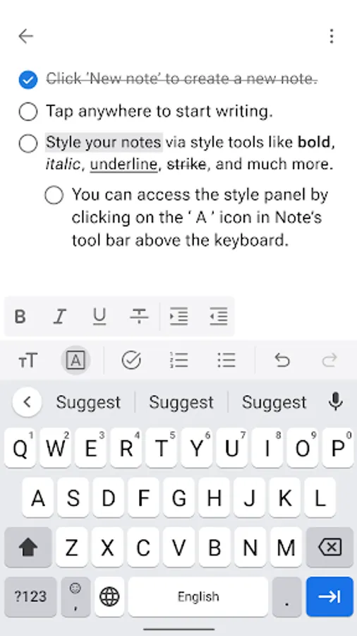 π Make your text bold, italic, underlined or strike-through using the inbuilt Note Editor.