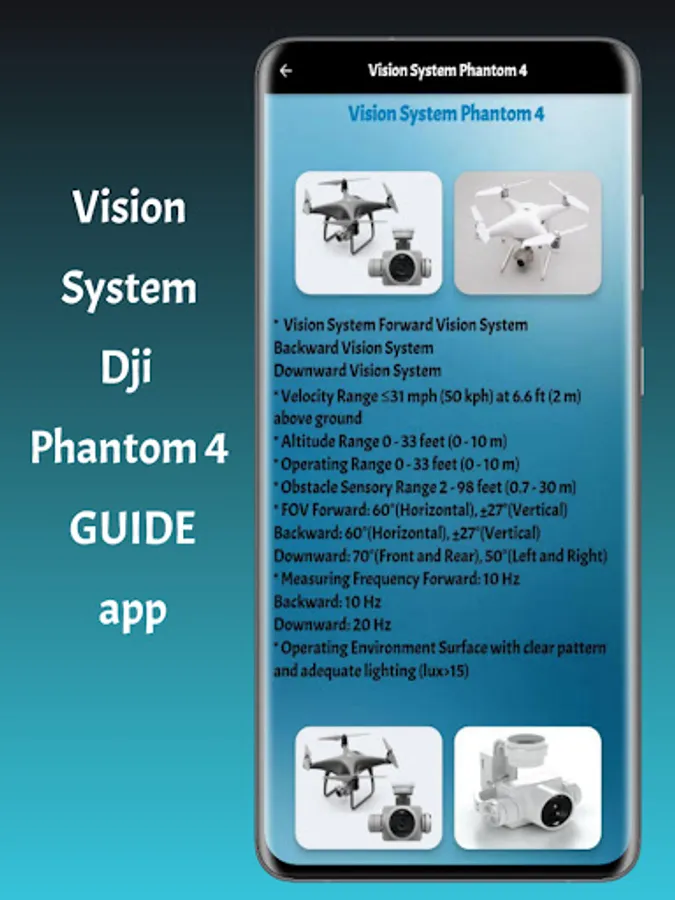 + This Dji Phantom 4 GUIDE App rich in information and pictures.