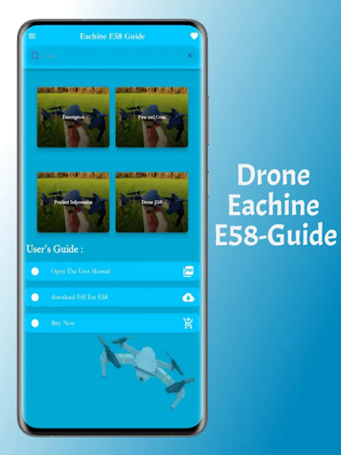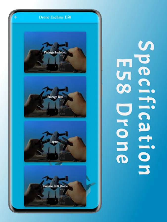 •In the Drone Eachine E58-Guide app we have supported many sections of content which will now let you more information about Drone Eachine E58-Guide