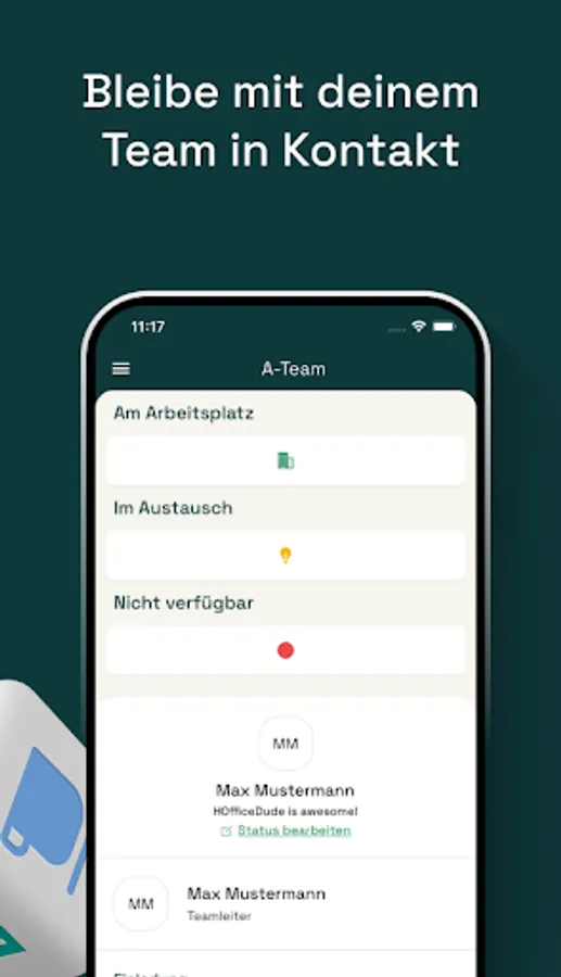 · Share your status with your colleagues by spinning the HOffice Dude cube