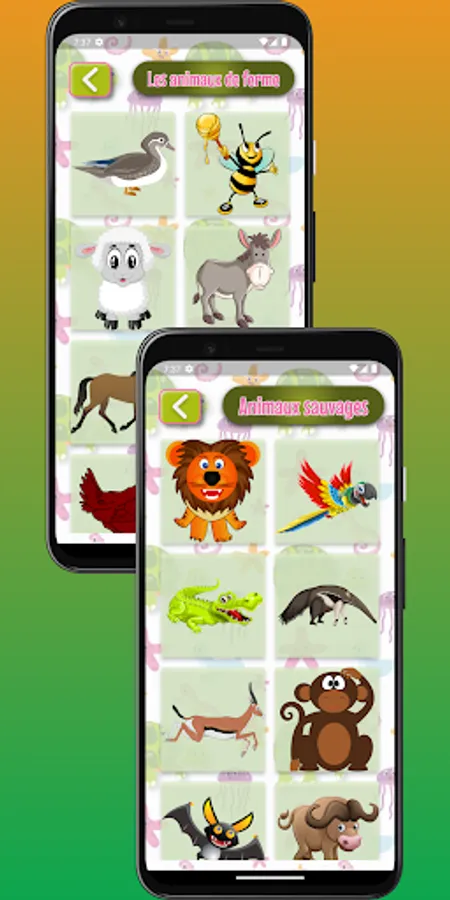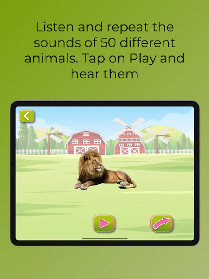 Animal sounds: The app also features recordings of animal sounds. Kids can listen to the sounds of different animals and learn how to identify them.