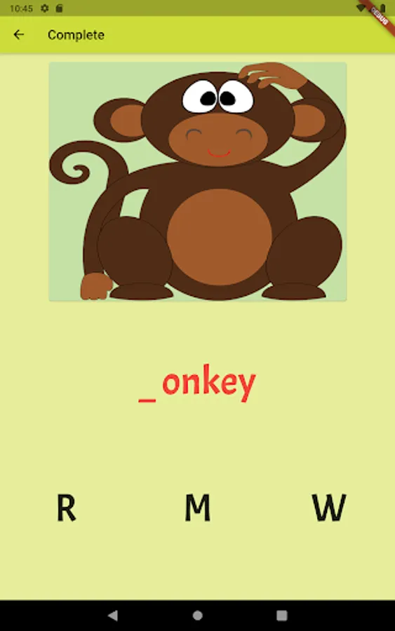 - Complete Letter: kids will hear the animal name and choose the right letter from three choices that animals start with.