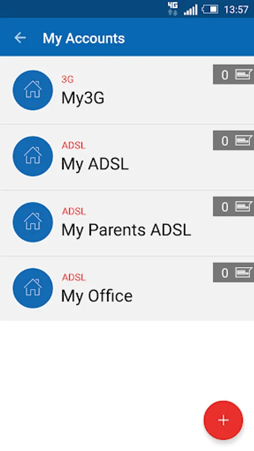 • Add and manage multiple ADSL or 3G accounts within the same app.