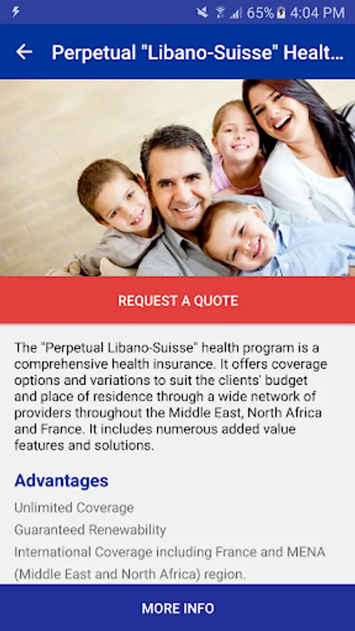 Find your product: Libano-Suisse products can be explored from the app and an online quotation requested.