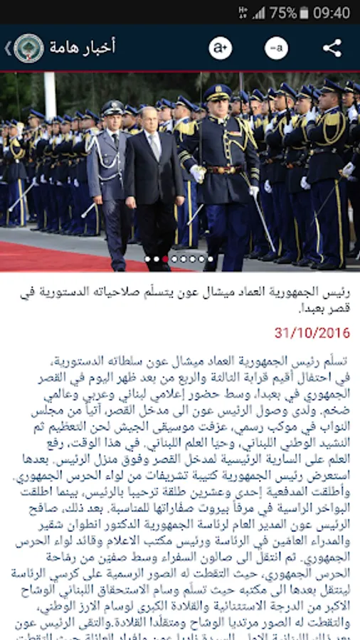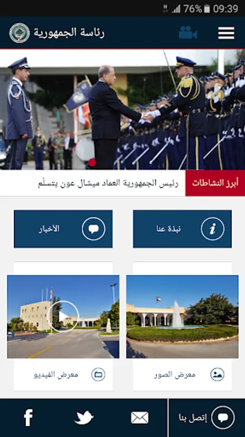 اطلقت المديرية العامة لرئاسة الجمهورية برنامجا تطبيقيا مجانيا للهواتف الذكية يتضمن متابعة تفصيلية ودورية لنشاطات فخامة رئيس الجمهورية واللبنانية الاولى عبر تلقي رسائل مقتضبة ، اضافة الى معلومات عن رئاسة الجمهورية والرؤساء السابقين والدستور اللبناني وعن الزيارات الشهرية للقصر الجمهوري ضمن اطار الابواب المفتوحة، اضافة الى معرض الصور والفيديو والبث المباشر، كما يمكن مراسلة مكتب الرئيس والاشتراك في النشرة الاخبارية.