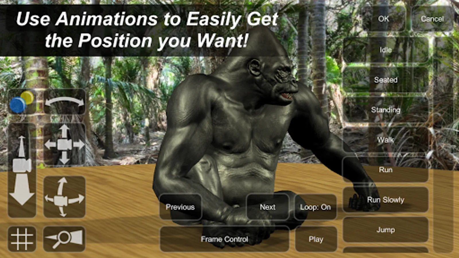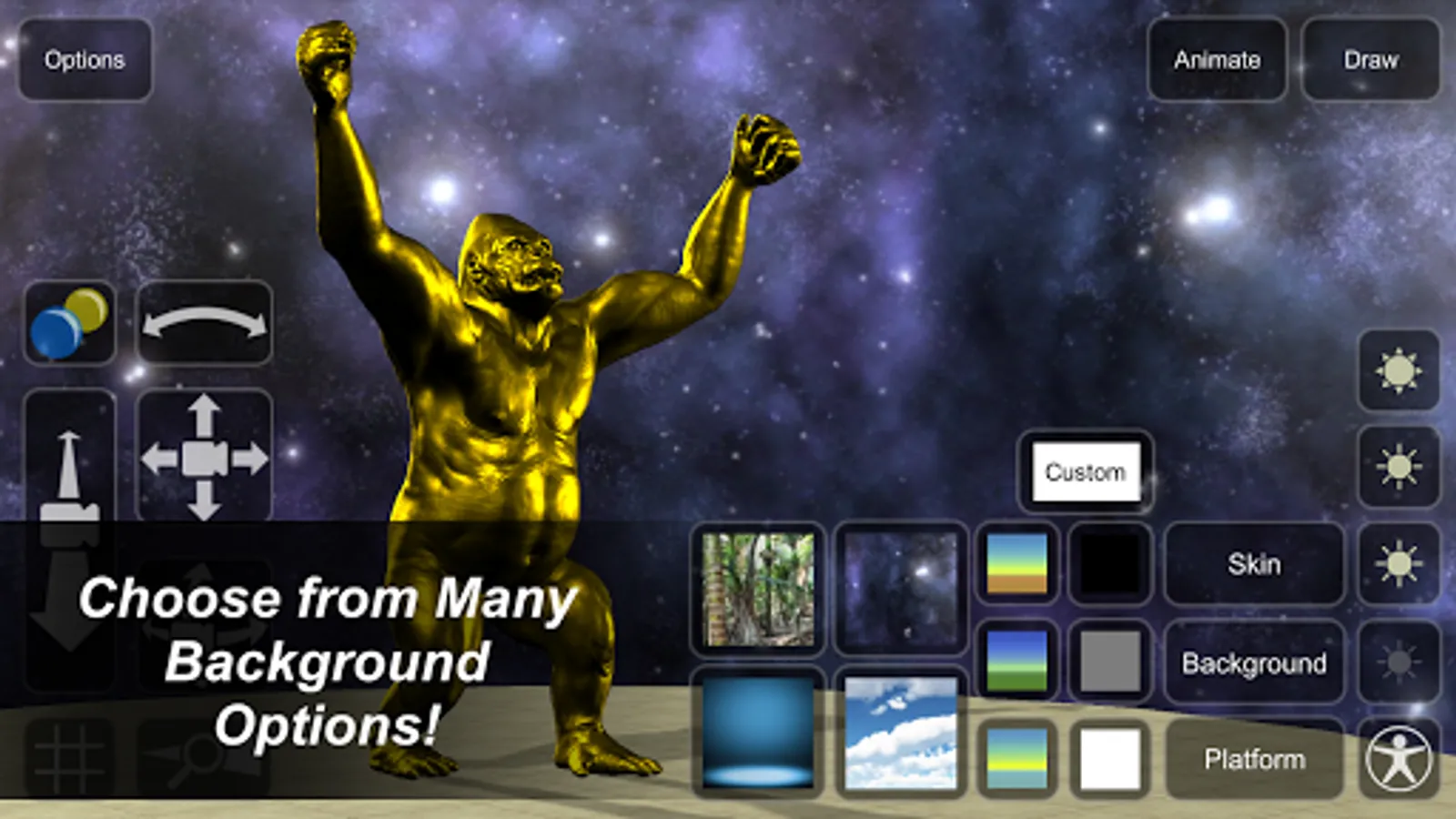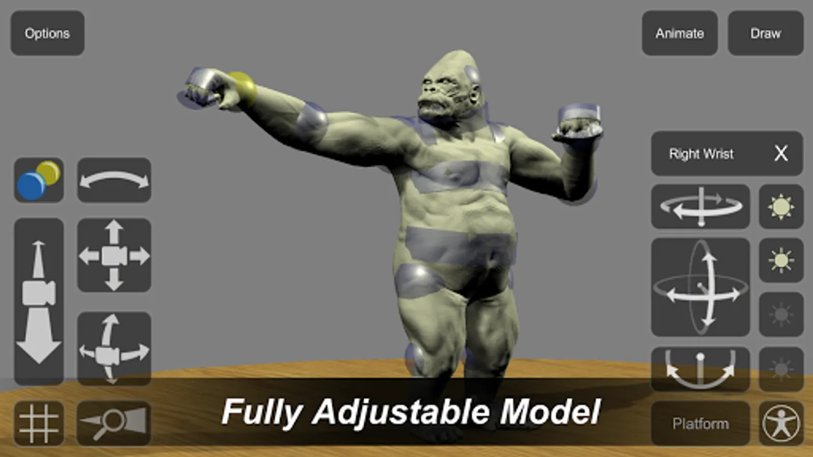 - Select individual 'bones' to adjust angle and position of limbs, achieve any pose.