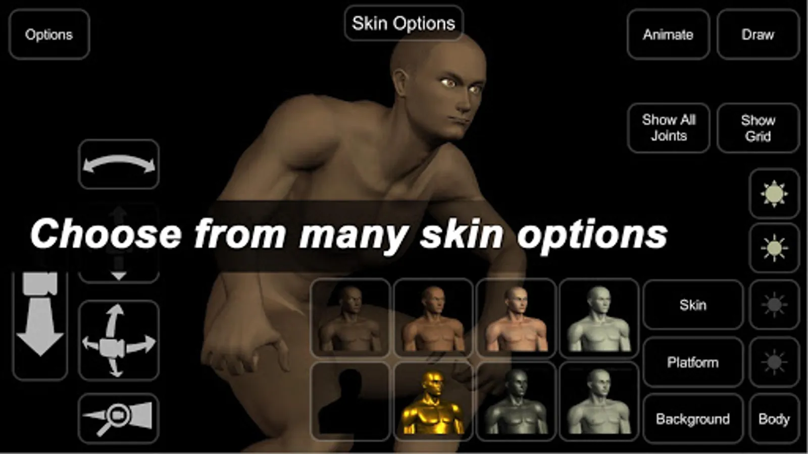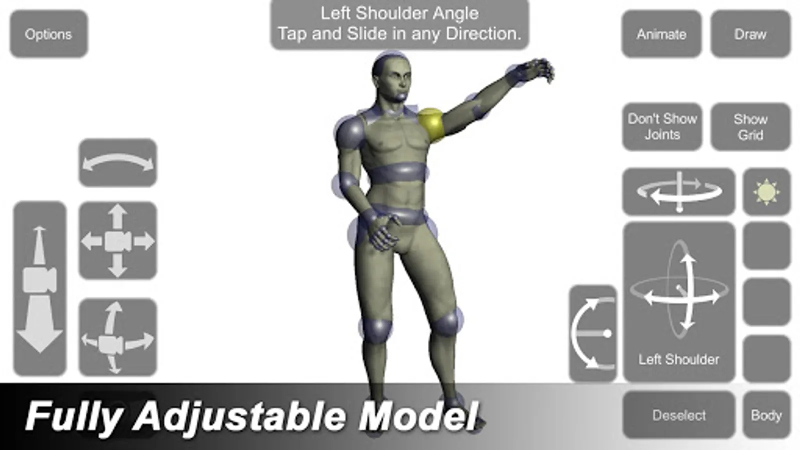 - Select individual 'bones' to adjust angle and position of limbs, achieve any pose.