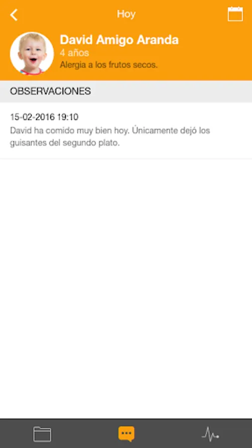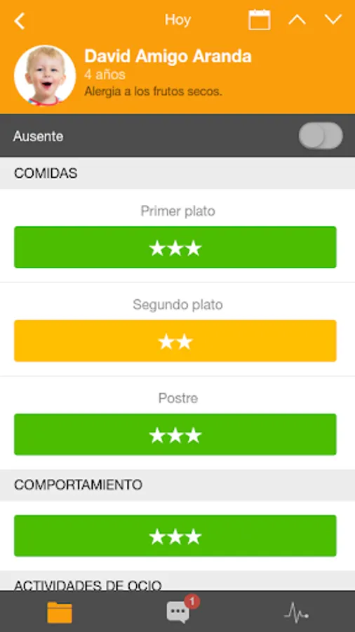 This application allows families of children / as, diners in school canteens serving Communities M. Master, receiving daily information from both food, and the behavior and activities of leisure time, through a device mobile or tablet.