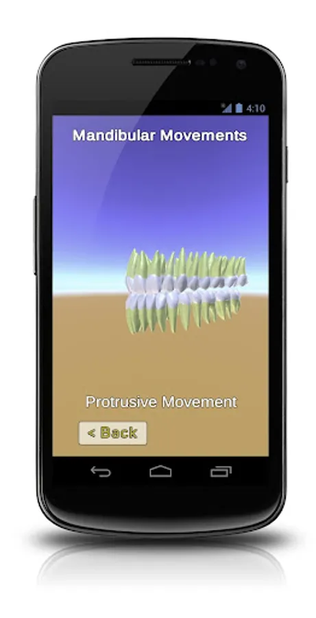 It includes a full set of 3D permanent human teeth with ideal anatomy. The teeth are aligned in ideal occlusal scheme. It also presents an animation of mandibular movements.