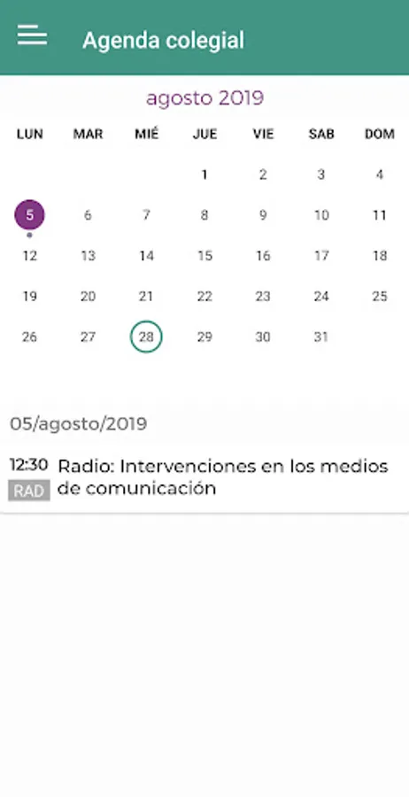 - Mailbox Calendar Agenda, a calendar that will reflect the collegial activity, publication of the training, talks, meetings, assemblies, events ... that will take place in the School's facilities and that will allow the collegiate to obtain at a single glance relevant information that can be added and synchronize with your personal agenda.