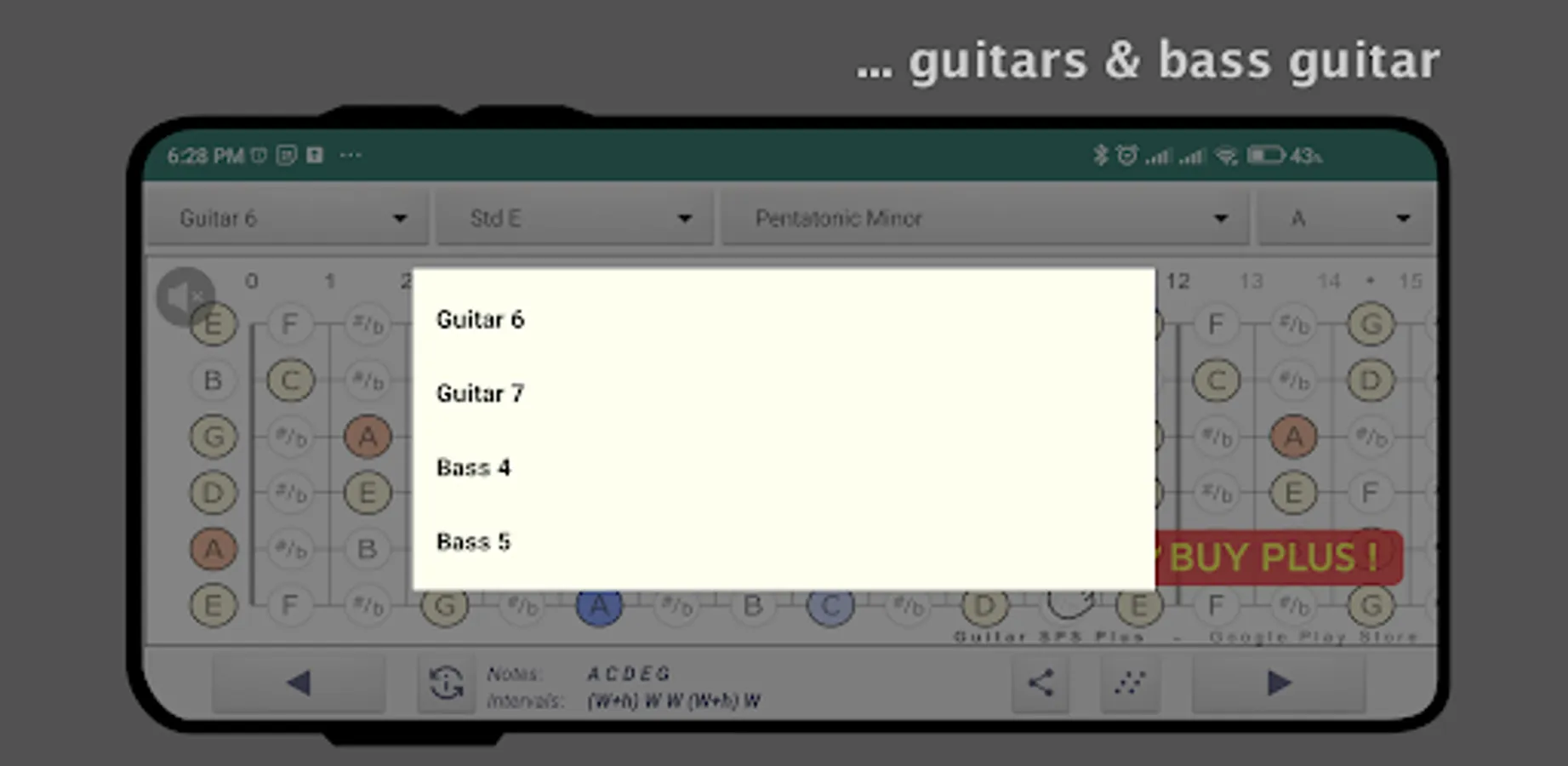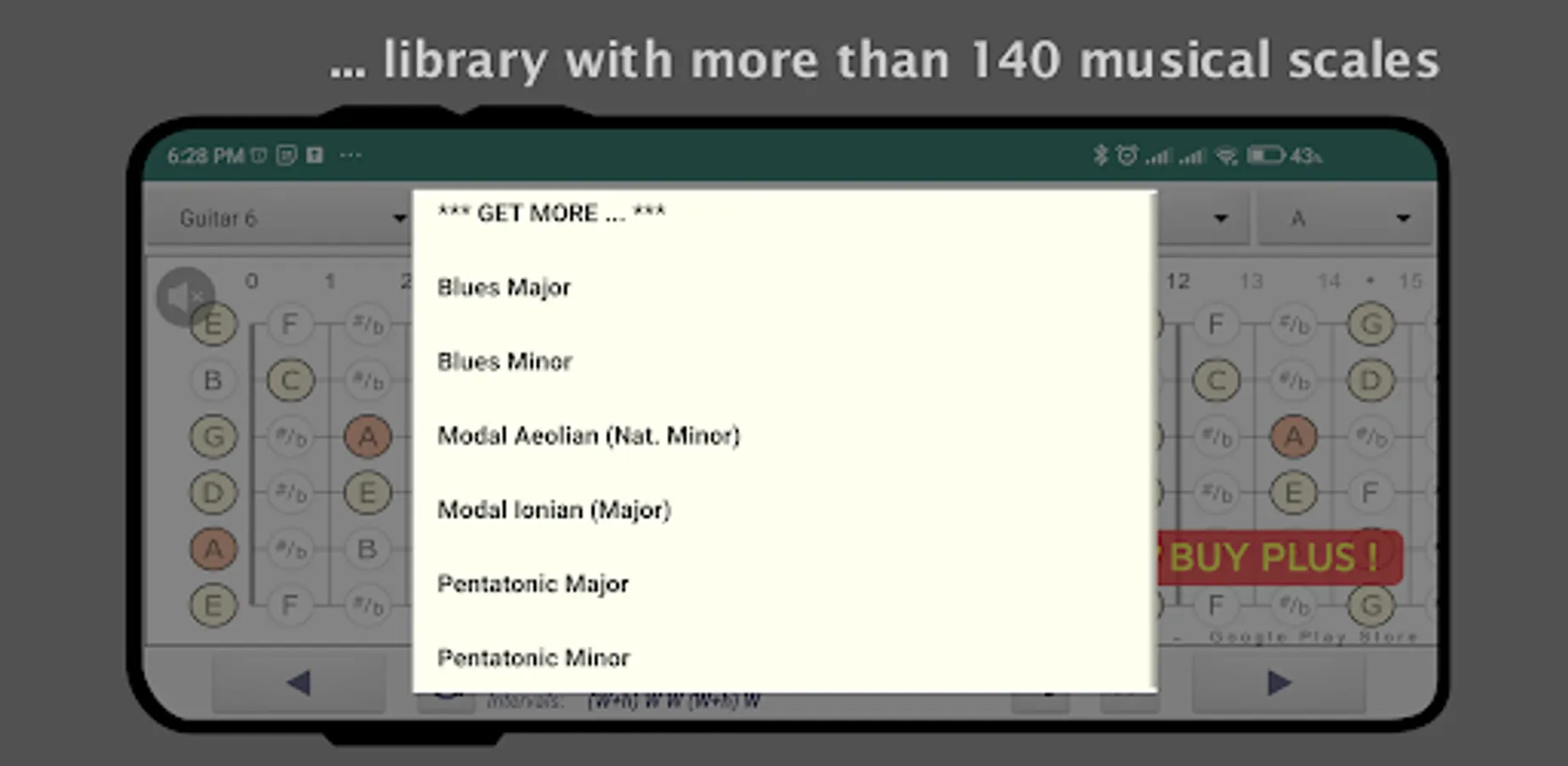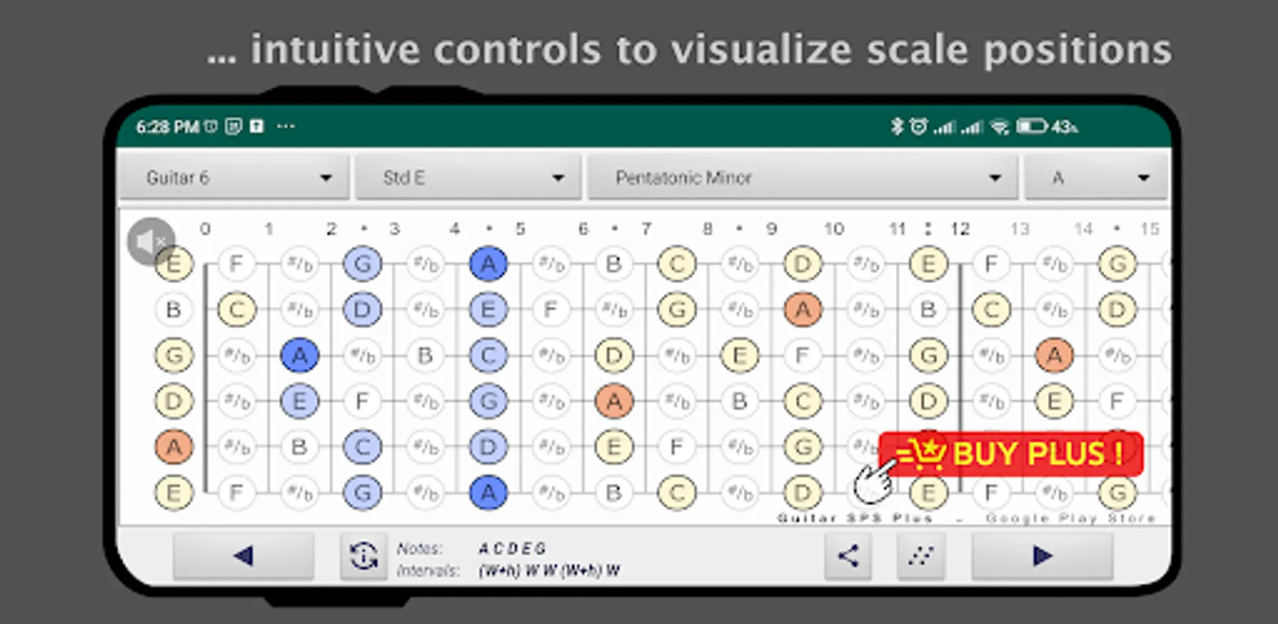 You just have to play your favorite backing tracks and practice guitar scales by following the patterns shown in this application.