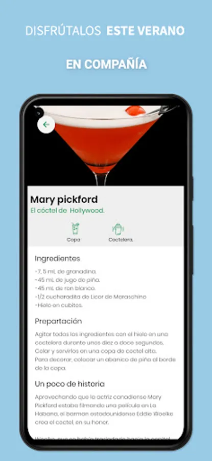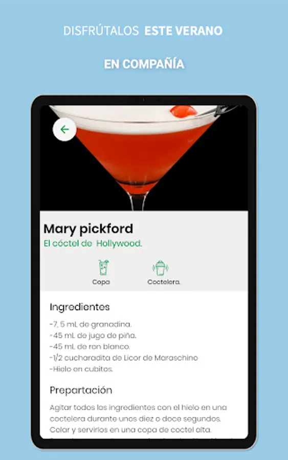 With our App you will learn all the secrets of these popular drinks and we provide you with a source of inspiration for your own cocktail recipe creations.