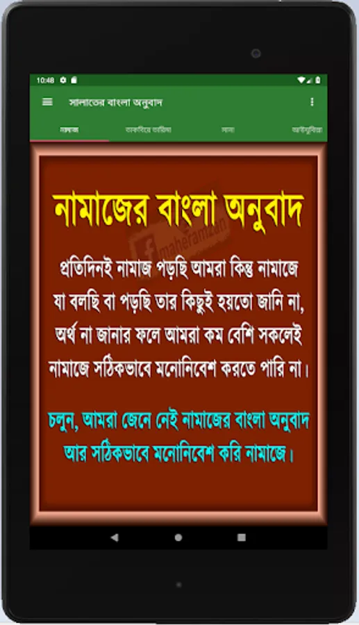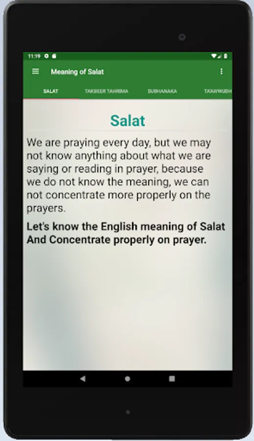 Through this app you will know the meaning of Arabic for every rak'at, surah and prostration used in prayer. Which will assist you to be fully focused in prayer. Inshallah