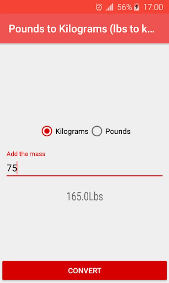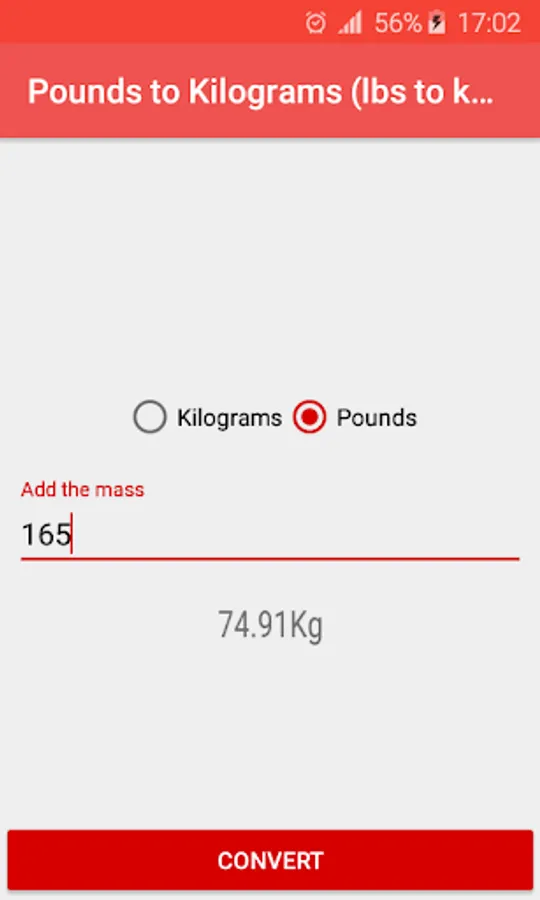 Simple and useful app, that you can convert Kilograms to Pounds and vice versa, with just one click!