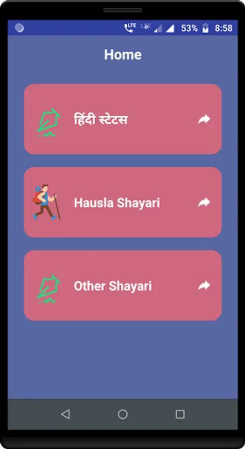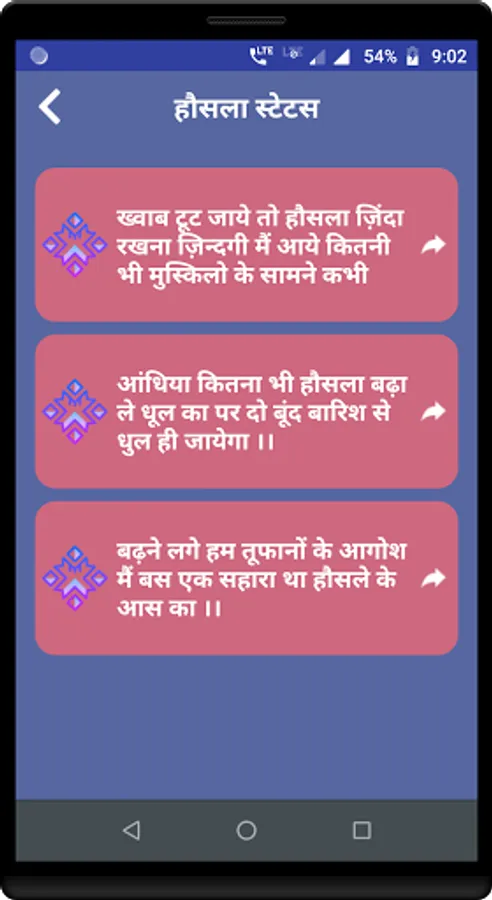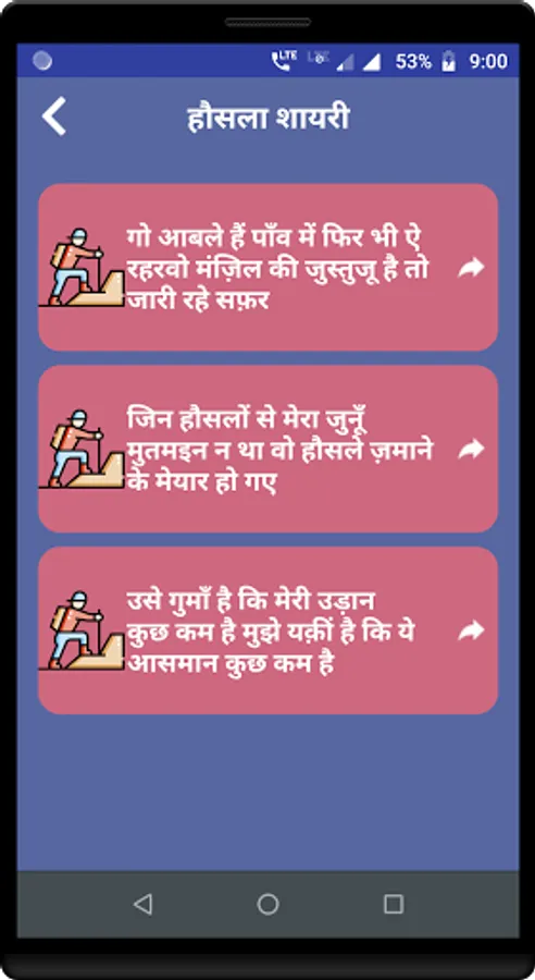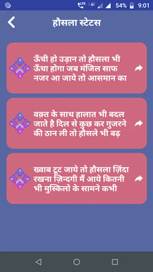One of the best Shayari App of All time. This app contains largest collection of Hausla Shayari, Motivational Status and Sad Shayari.
