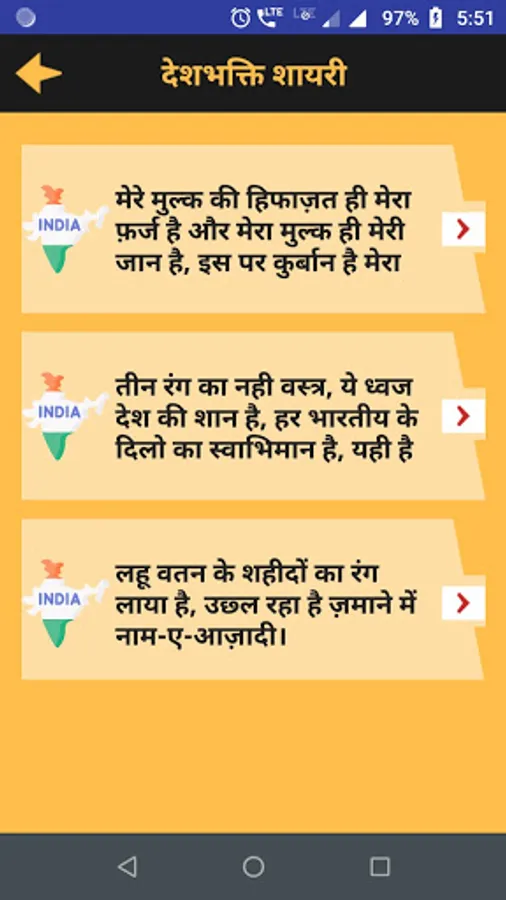 This app contains largest collection of hindi deshbhakti Shayari & Patriotic Status.
