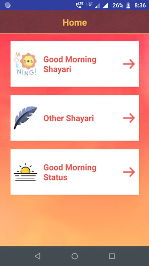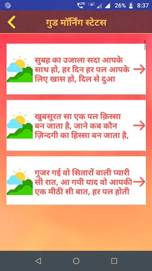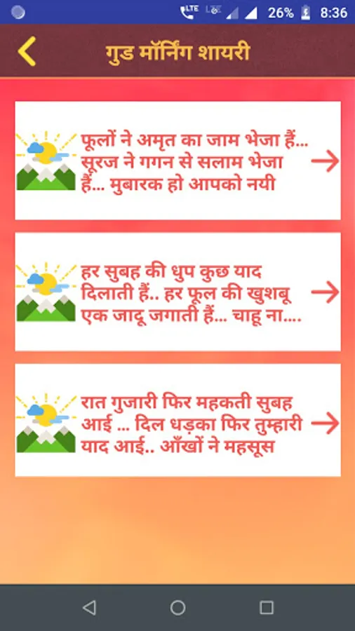 This app contains largest collection of hindi Good Morning Shayari & Status.