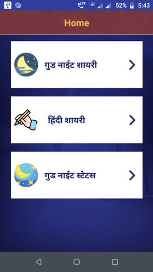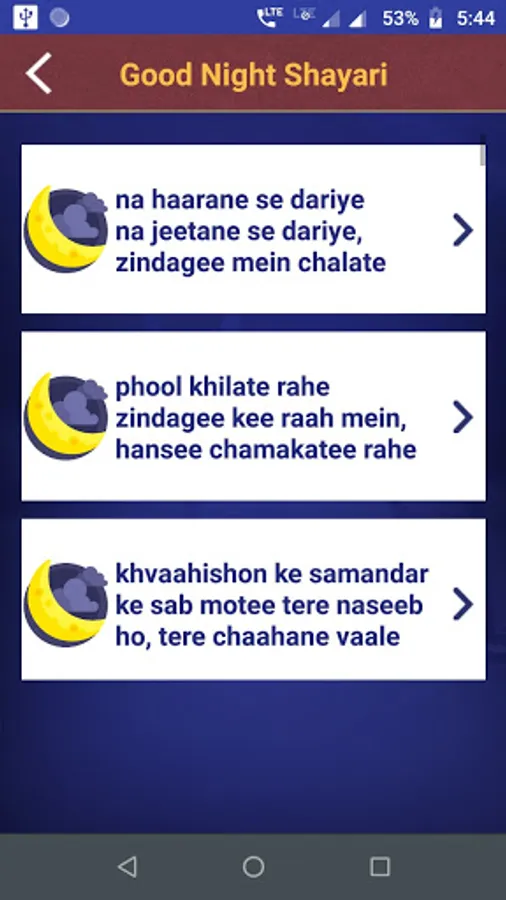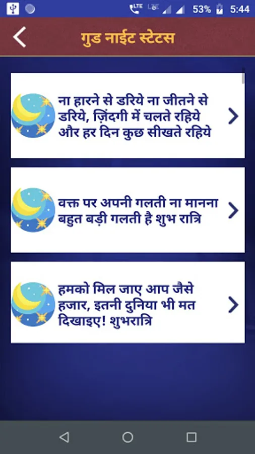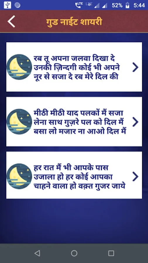 This app contains largest collection of hindi Good Night Shayari & Status.